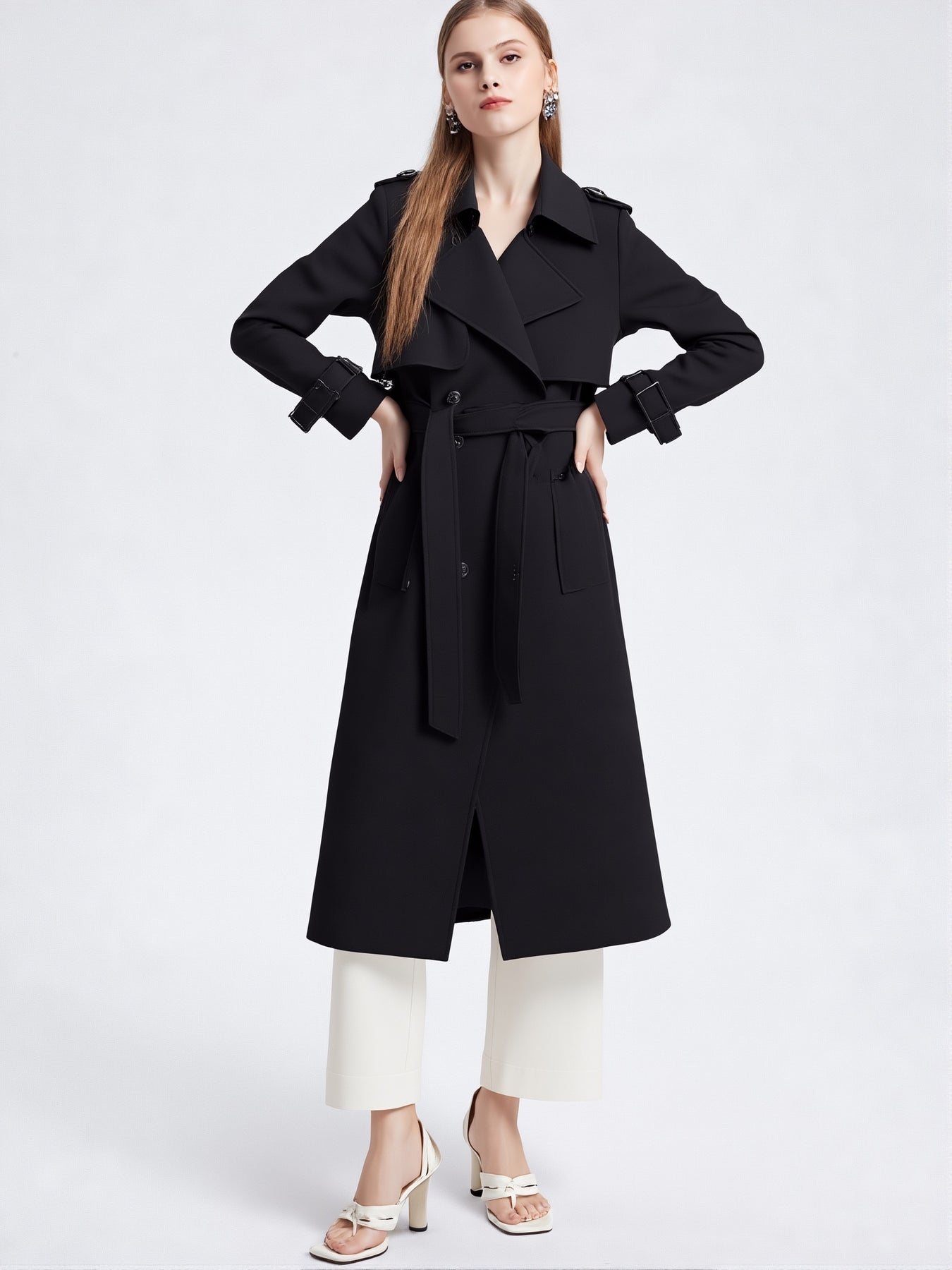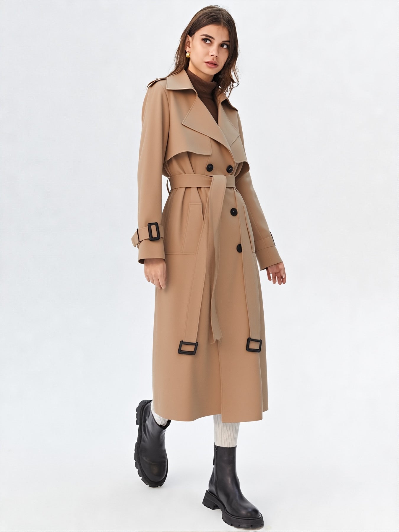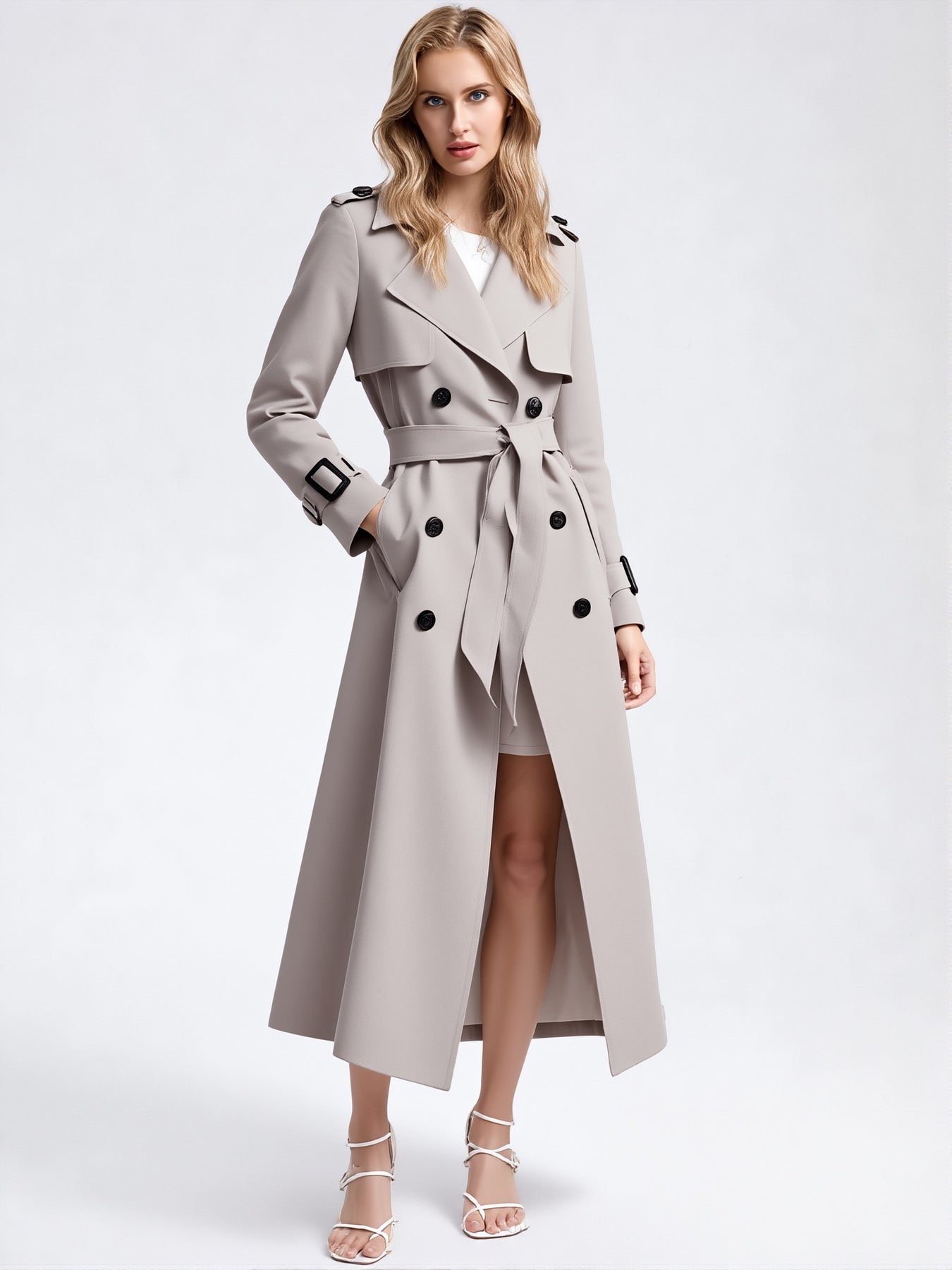 Ce trench-coat mi-long à double boutonnage est conçu pour les femmes qui recherchent une pièce élégante, moderne et parfaitement adaptée à leur quotidien.
