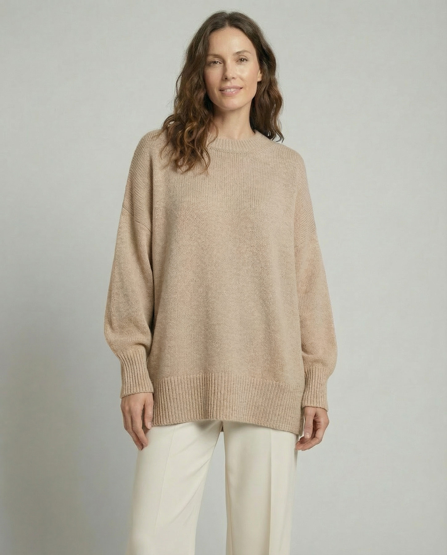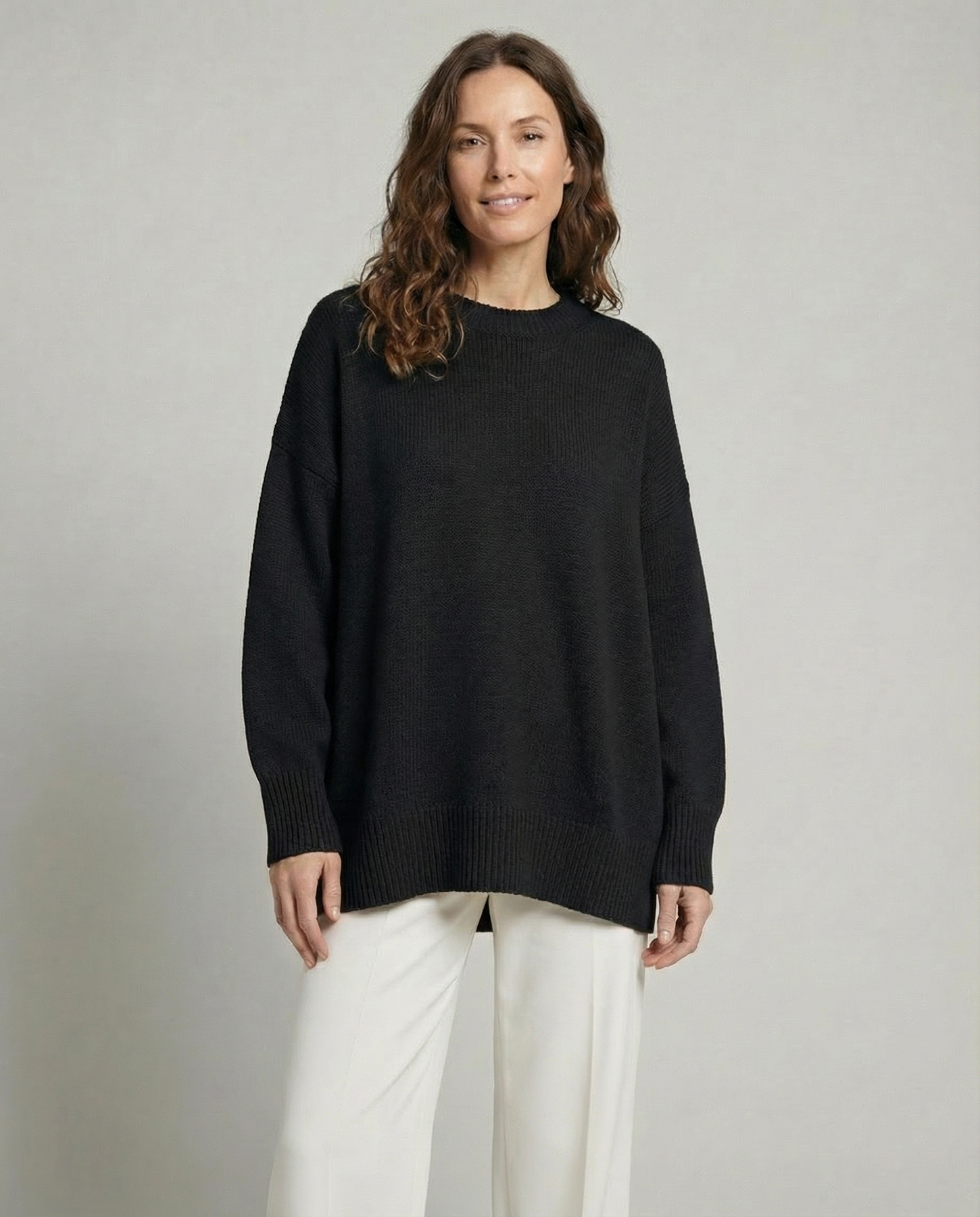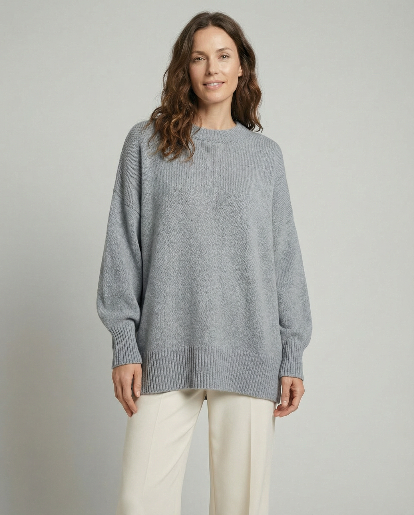 Son design simple et universel en fait une pièce facile à assortir : un jean bien coupé, une jupe midi ou un pantalon chic deviennent instantanément plus harmonieux avec ce pull. La coupe ample assure une liberté de mouvement et un confort durable, tout en restant élégante.